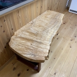 キラキラの全面杢のトチ一枚板で奥様へプレゼントされるセンターテーブルをお作りしました。