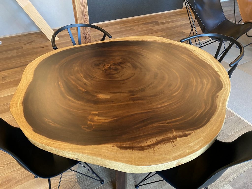 最大150cm径の輪切り一枚板。