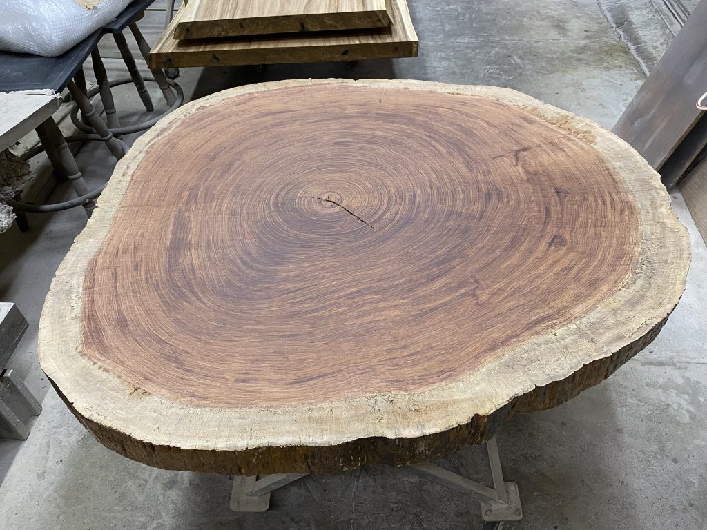 割れが発生しますが、輪切り材は年輪の美しい表情が魅力的です。
