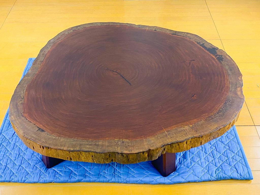 ブビンガ輪切りテーブルの修理依頼がありました。