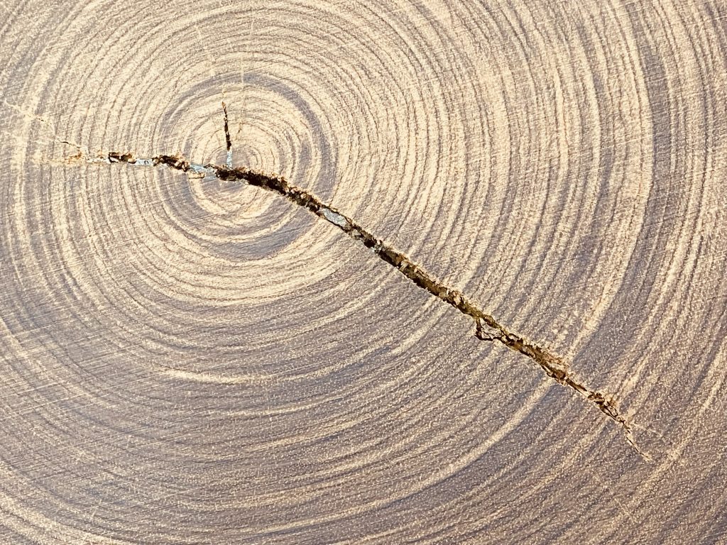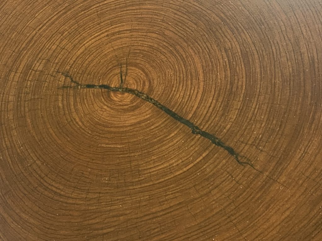 輪切り一枚板の真ん中に割れがあり